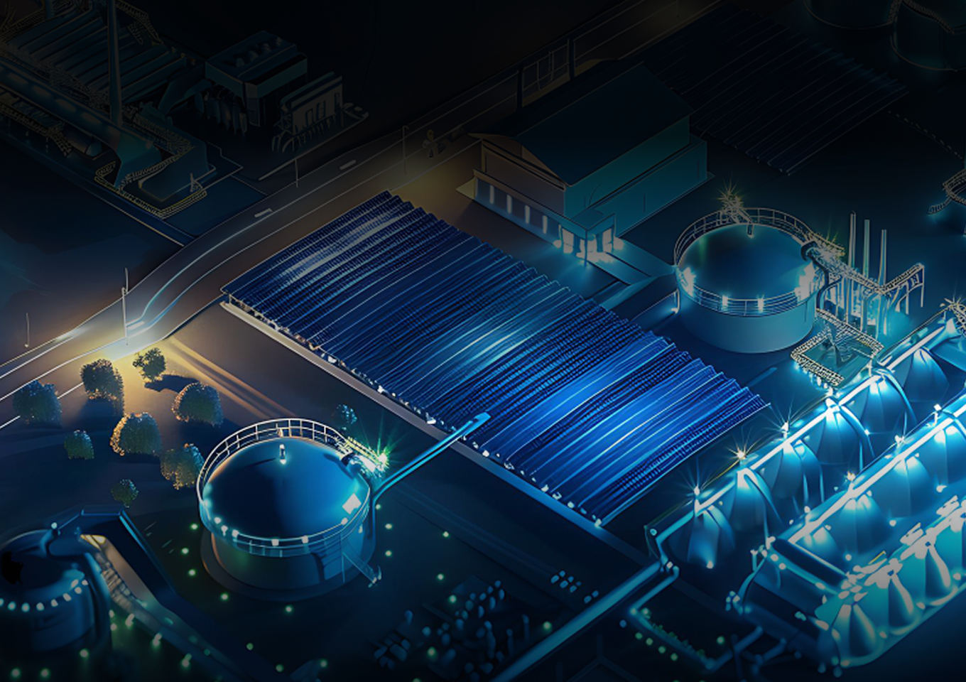 산업단지 전반의 설비·에너지·데이터를 3D 모델 기반 디지털 트윈으로 통합하고 실시간 데이터 연계를 통해 산업 인프라 운영 상태와 설비별 현황 가시화 및 이상 감지 정보를 제공